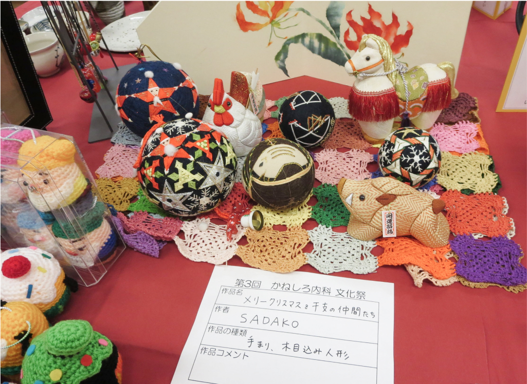 当クリニックに通院されている患者さまより募集した作品の展示会です。写真、絵画、手芸、工作など、毎年素晴らしい作品の数々。皆さまのご趣味の幅広さやクオリティの高さに、スタッフ一同驚きと感動をいただいています。是非一度出展して見ませんか?金城医師も出展していますよ!