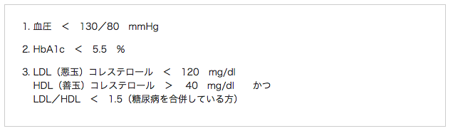 血管のためにも、LDL(悪玉)コレステロールや血圧・血糖値を下げてゆきましょう。
