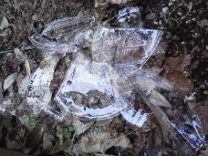 昨日、1月15日朝自宅近くの水溜まりが凍っていました。