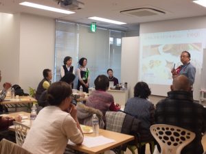 野菜料理の試食や健康運動指導士から体操のレクチャーもあり