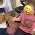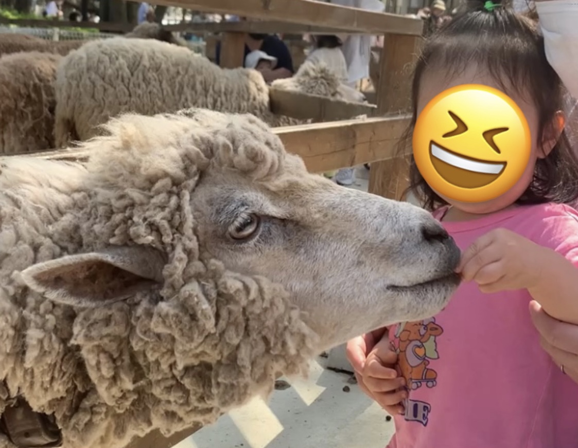 「びっくりして泣いちゃうかな」という親の心配を大いに裏切り、全く物怖じせず、積極的に動物たちに近寄っていく娘!