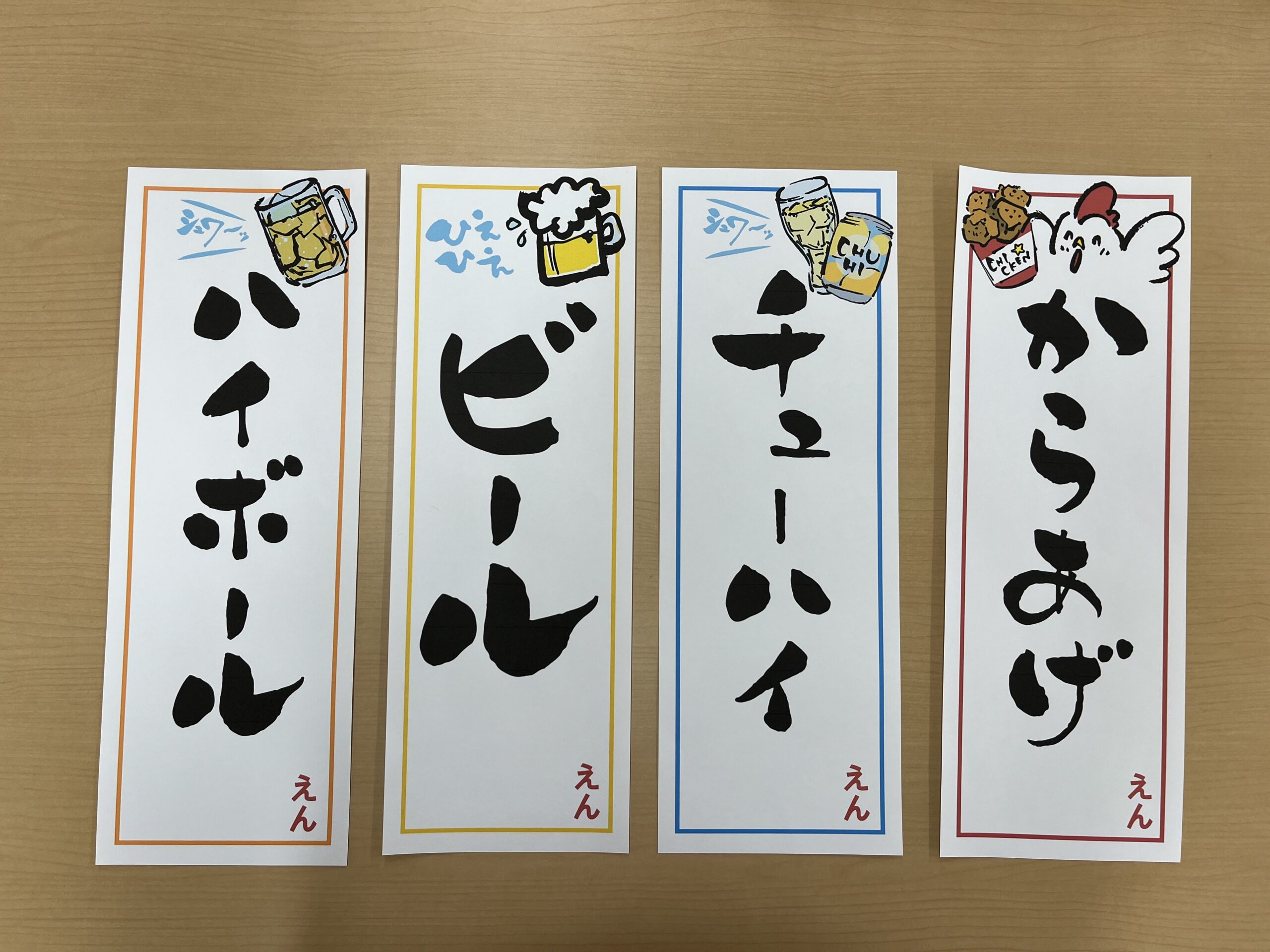 今回はレストランや居酒屋でどんなメニューを選んだらよいかわかりやすくお伝えする企画があるためスタッフが様々なグッズを作成しました。
