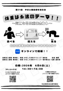 さらに、減量につながるお薬のお話や、ご自宅でもできる簡単な運動もご紹介予定です。