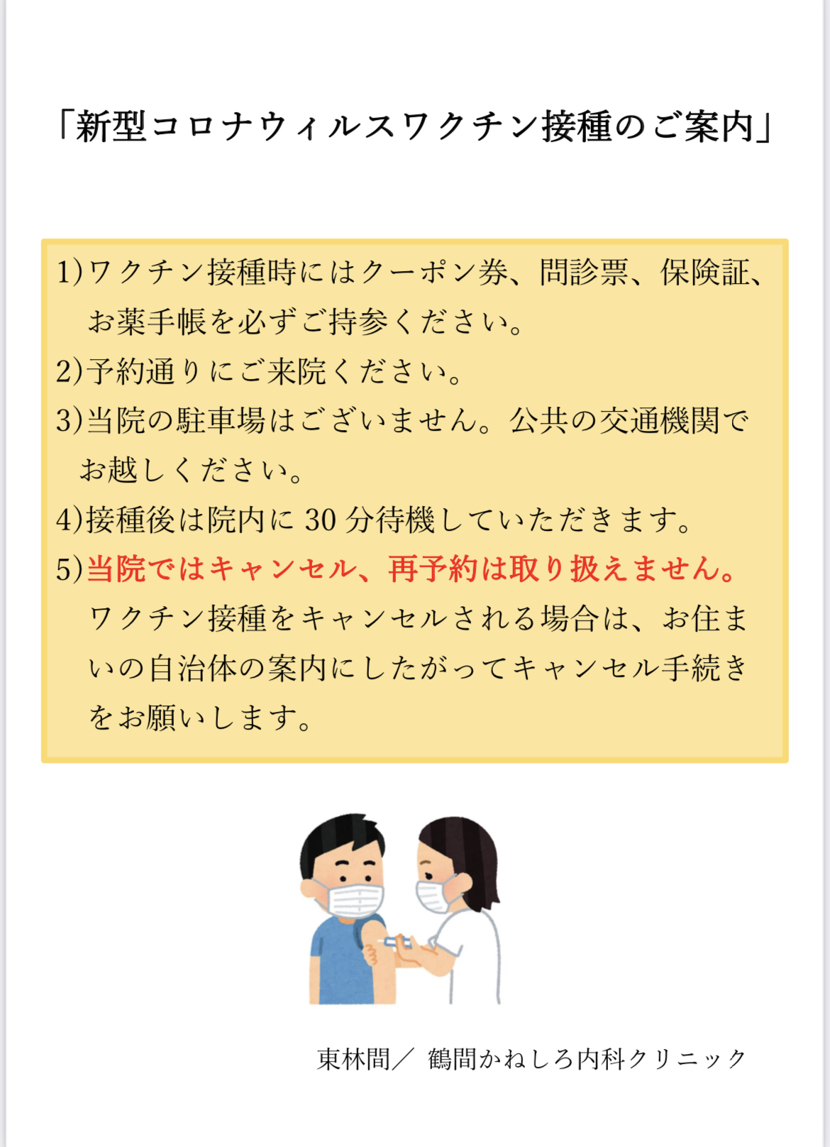 当院でワクチン接種が決まった方は、下記案内をご一読してご来院くださいますようお願いいたします。