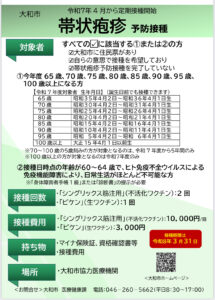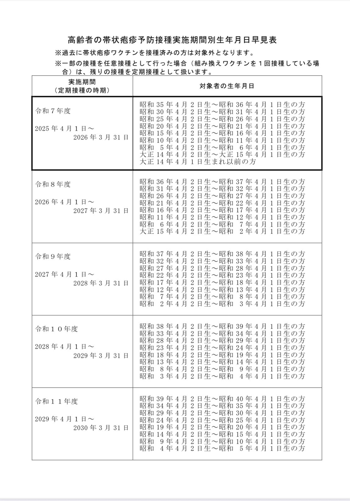 帯状疱疹ワクチン接種(定期接種)が始まりました